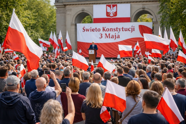 Der andere Maifeiertag ist am 3. Mai. An diesem Tag feiert man die polnische Verfassung, die als erste ihrer Art in Europa und als zweite in der Welt verabschiedet wurde. Sie wurde am 3. Mai 1791 vom Sejm, dem polnischen Parlament, im Warschauer Königsschloss verabschiedet. Dieser Nationalfeiertag hat eine nicht so lange Tradition wie der Tag der Arbeit und wurde erst am 6. April 1990 eingeführt.